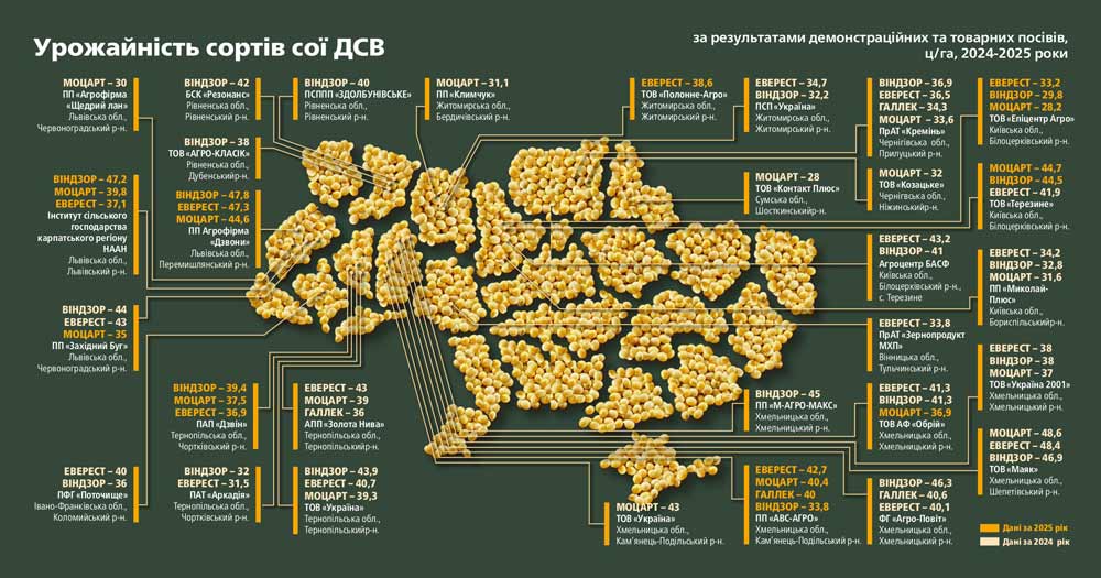 Асортимент сортів сої 2026 та їх характеристика: