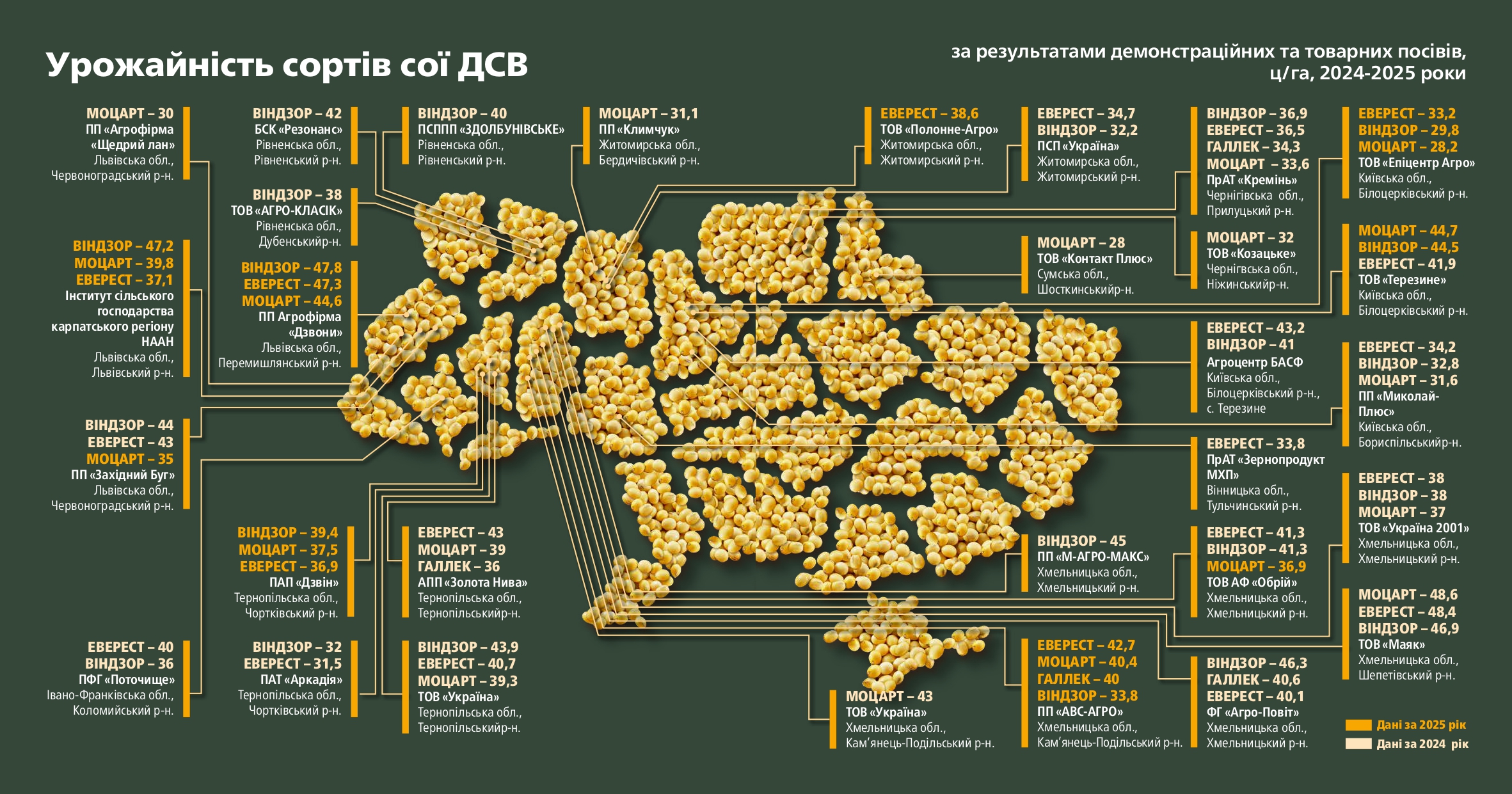 Короткий опис кожного сорту сої наведений нижче: