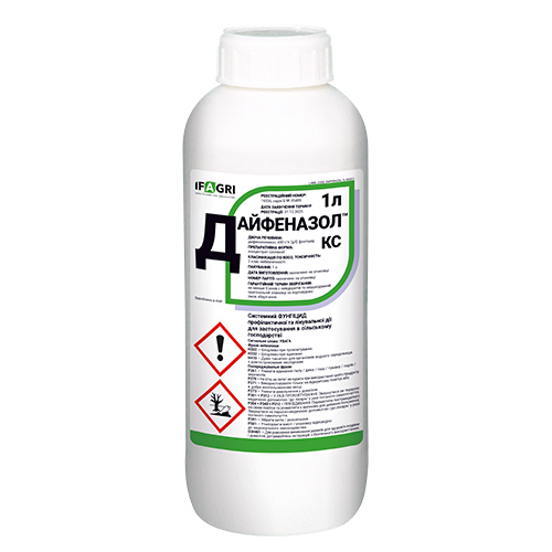 Дайфеназол, КС - cистемний фунгiцид широкого спектру дiї з хімічної групи триазолів, призначений для захисту посівів соняшнику, ріпаку, пшениці та яблуні від збудників хвороб грибного походження.