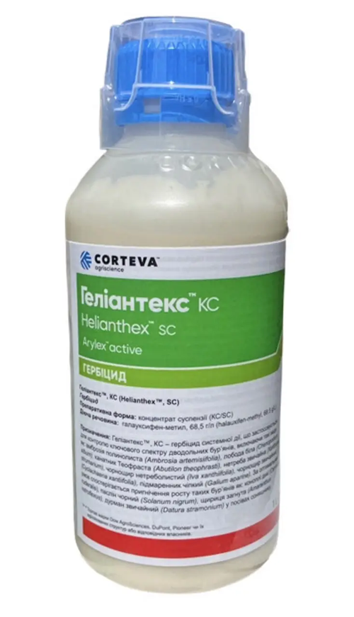 Геліантекс™ – інноваційний гербіцид системної дії для контролю проблемних видів дводольних бур’янів у посівах соняшнику. Геліатекс™ містить у своєму складі діючу речовину галауксифен-метил, яка відноситься до нового класу хімічних сполку – арилпіколіанти, що за міжнародною класифікацією, відноситься до групи ауксиноподібних гербіцидів, ризик розвитку резистентності у якої визначений як низький