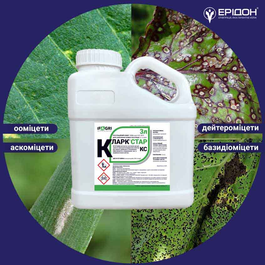 Компанія «Ерідон» представляє новий високоефективний фунгіцид Кларк Стар від IFAGRI у вигляді концентрату суспензії, діючою речовиною якого є азоксистробін з вмістом 500 г/л.