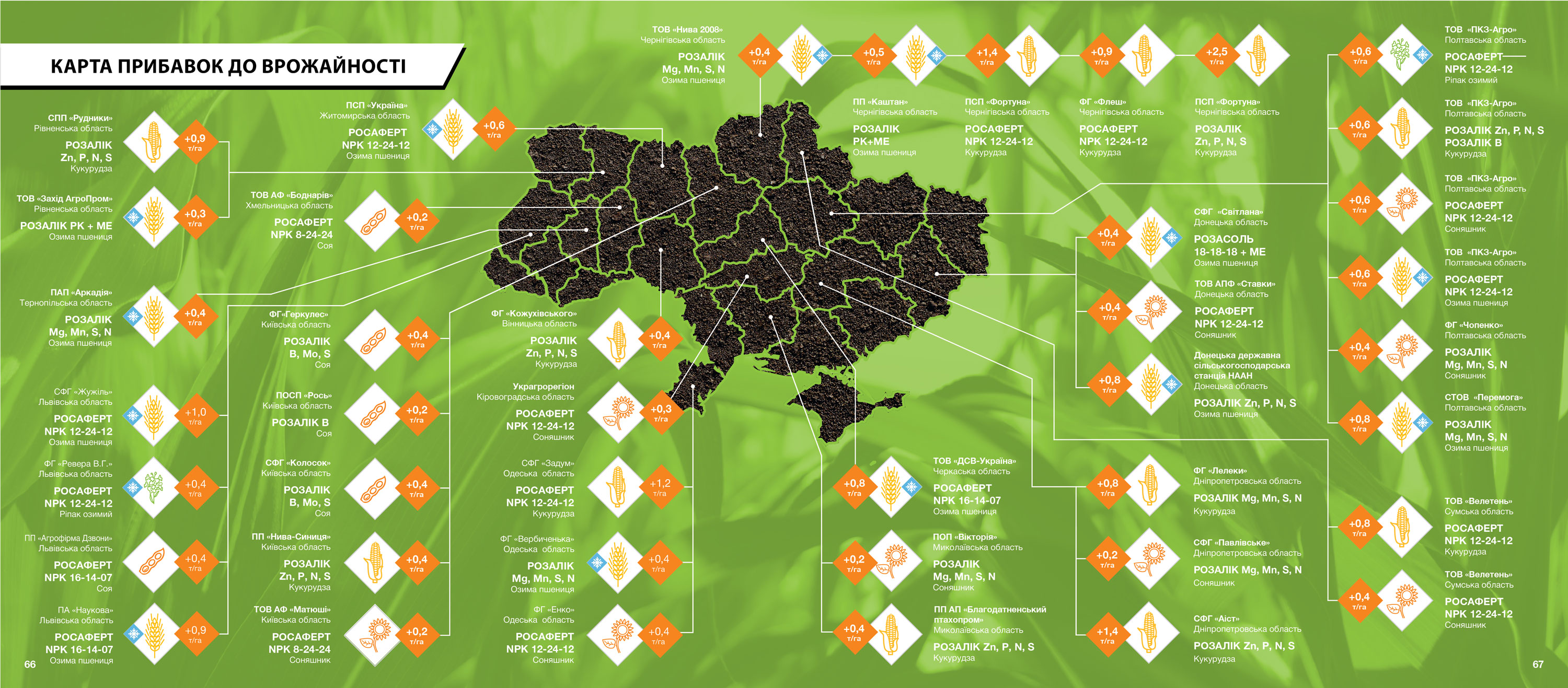 Карта прибавок до врожайності при застосуванні спеціальних та мікродобрив від ROSIER