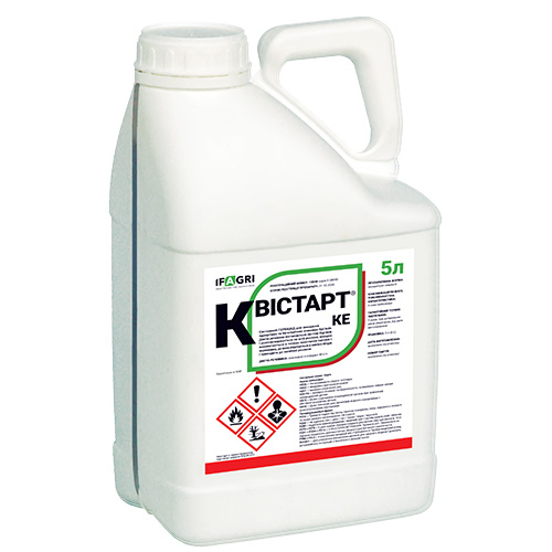 Квістарт, КЕ - системний протизлаковий гербіцид, який дуже швидко поглинається листками та іншими надземними частинами бур’янів і транспортується до точок росту пагонів і кореневищ. Препаративна форма – концентрат емульсії. Діюча речовина препарату – хізалофоп-П-тефурил з класу похідні 2-(4-арилоксифенокси) пропіонові кислоти. Гербіцид порушує синтез ліпідів, що призводить до загибелі рослин. Препарат не проникає через ґрунт та не впливає на бур’яни, які з’явилися після обробітку посівів, а діє лише на вегетуючі бур’яни на час обприскування.Механізм дії