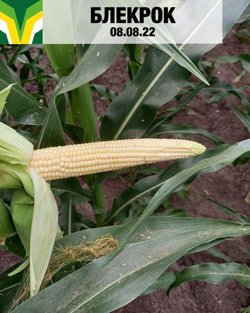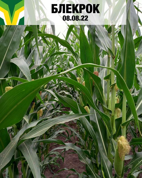 - Блекрок (ФАО 340) - гібрид перебуває у фазі молочна стиглість. Висота самої рослини 3 м. У початка ми маємо 14-16 рядів та до 50 насінин у ряді. На кукурудзі відсутні хвороби та прояви нестачі елементів живлення.