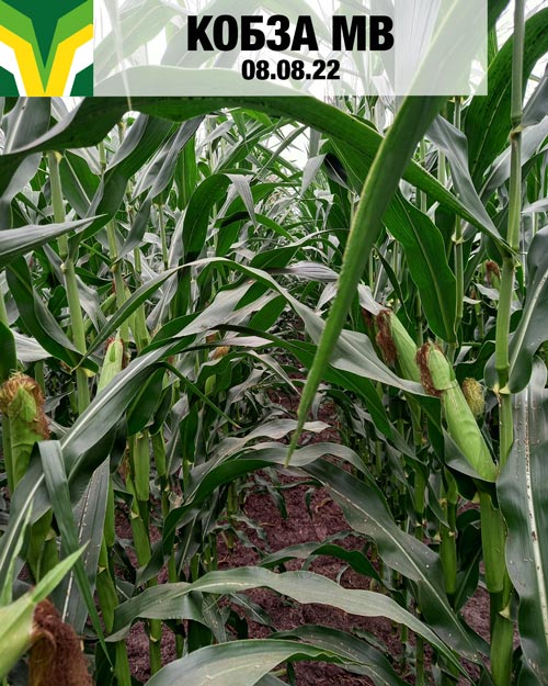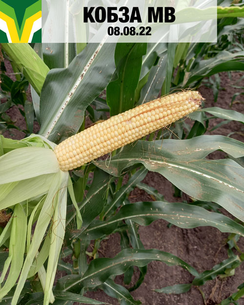 - Кобза МВ (ФАО 320)- на момент огляду на гібриді не спостерігаємо хвороб та нестачі елементів живлення. Кукурудза почуває себе чудово і зараз знаходиться у фазі молочна стиглість. Має у початку 14-16 рядів та до 45 насінин у початку.