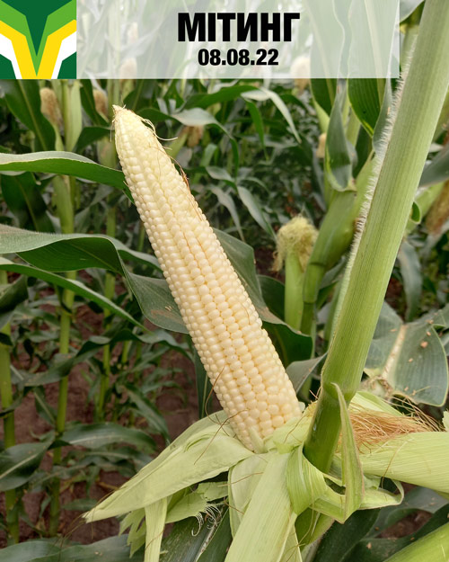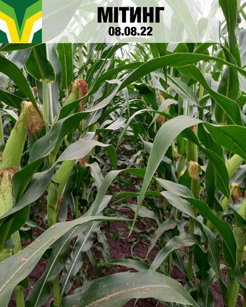- Мітинг (ФАО 390) - гібрид перебуває у фазі молочна стиглість. Висота рослини 3 м, має початок з 14-16 рядами та до 45 насінин у ряді. Кукурудза почувається добре, прояви хвороб відсутні.