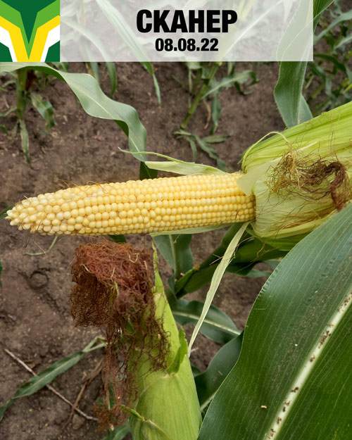 - Сканер (ФАО 250) - гібрид перебуває у фазі молочна стиглість. Хвороби на рослинах відсутні. Має гарний початок 16-18 рядів і до 40 насінин у ряді. Рослина середня за висотою і становить 2,5 м.