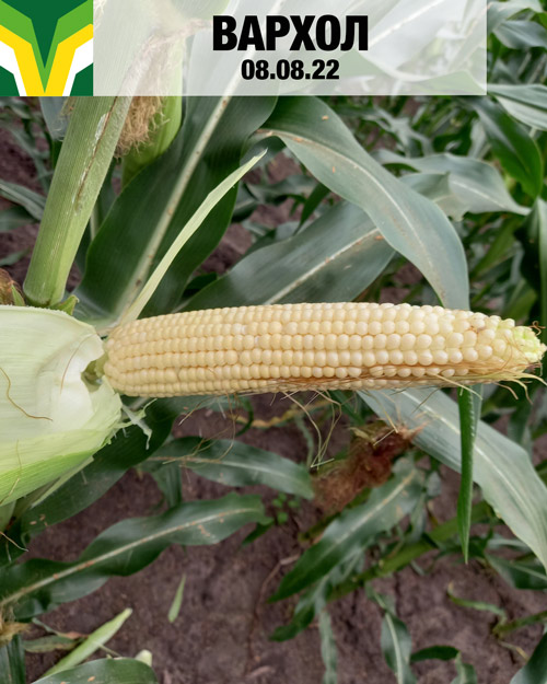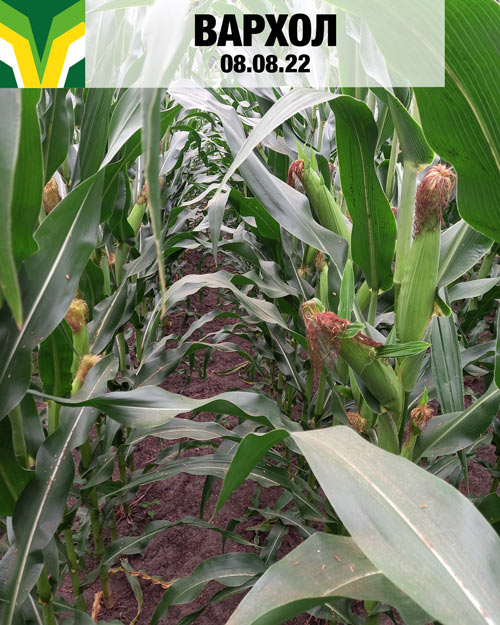 - Вархол (ФАО 300) - зважаючи на прекрасну погоду у цьому році, гібрид почувається чудово і знаходиться у фазі молочна стиглість. Висота рослини 3 м. Хвороби та нестачі макро- та мікроелементів живлення відсутні.